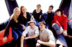 Das junge Journalistenteam: v.l.n.r: Outi Turunen, Hayley Sarian, Stefano Plakolmer (vorne), Cécile Lévy, Tako Rietveld (vorne), Christian Schwochow, Liliana Moreira