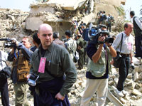 SWR-Korespondent Stephan Kloss in Bagdad, bei einer vom Informationsministerium organisierten Tour zu einer Raketeneinschlagsstelle. |